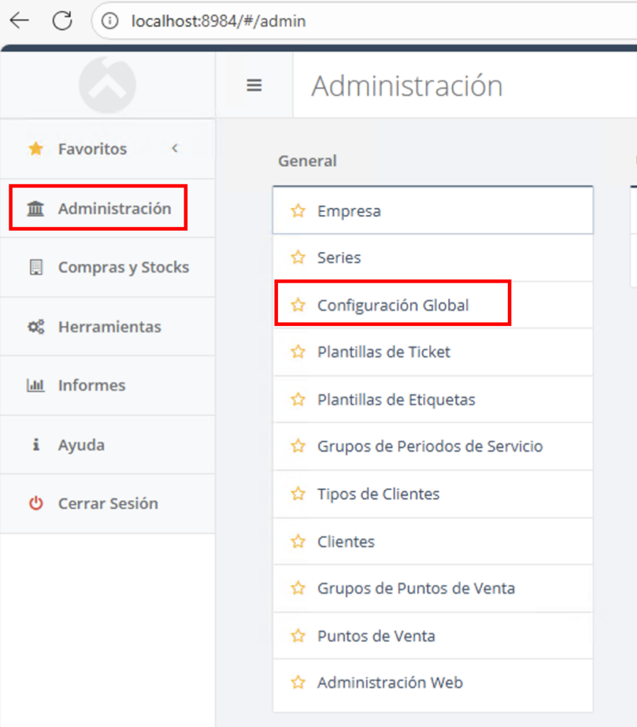 Vaya a Administración > Configuración Global.