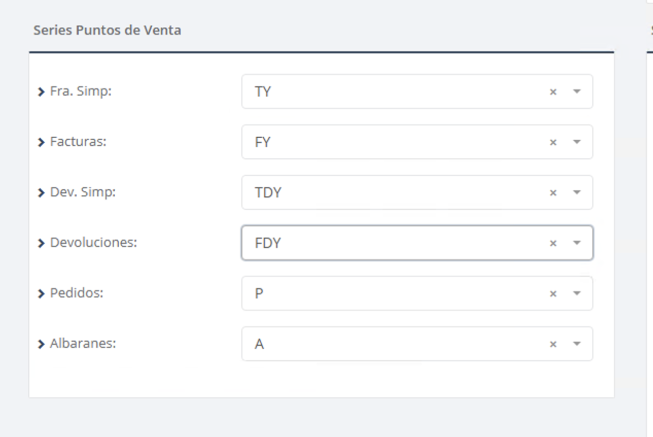 Una vez creadas las series, hay que indicarle al sistema que las utilice en el punto de venta correspondiente.